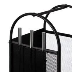 Handcrafted Sling Firewood Rack With Bar And Tools Hammered Steel