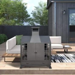 67.5 In. H Outdoor Metal Black Fire Pit Chiminea 2-In-1 Wood Burning Fireplace With Grill