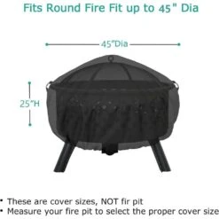 Outdoor Grill Waterproof Cover Round Fire Pit Cover, Black, 45 In. D X 25 In. H