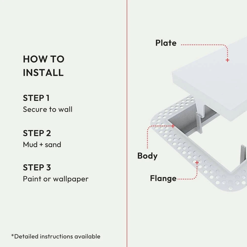 Elevate your unloved wall vents with a modern solution. We’ve re-imagined grille vents into a simple rectangular air channel design. Drywall bead rim that contours vent into wall surface, hiding in plain sight. Pro install requires drywall mudding. A perfect weekend project to upgrade an eye sore into a design feature. Standardize all the vents throughout your home, regardless of surface material and location. Floor vent models also available.