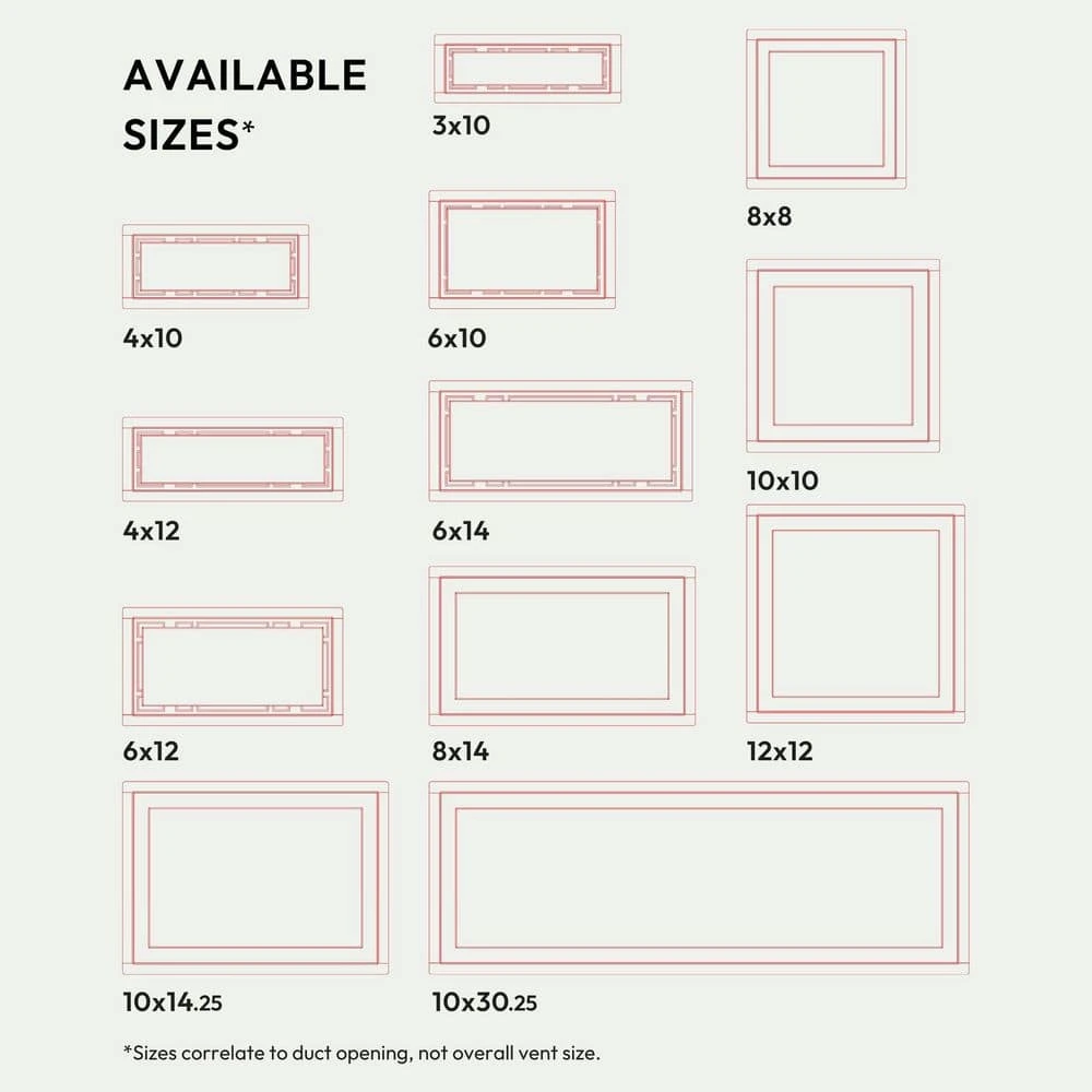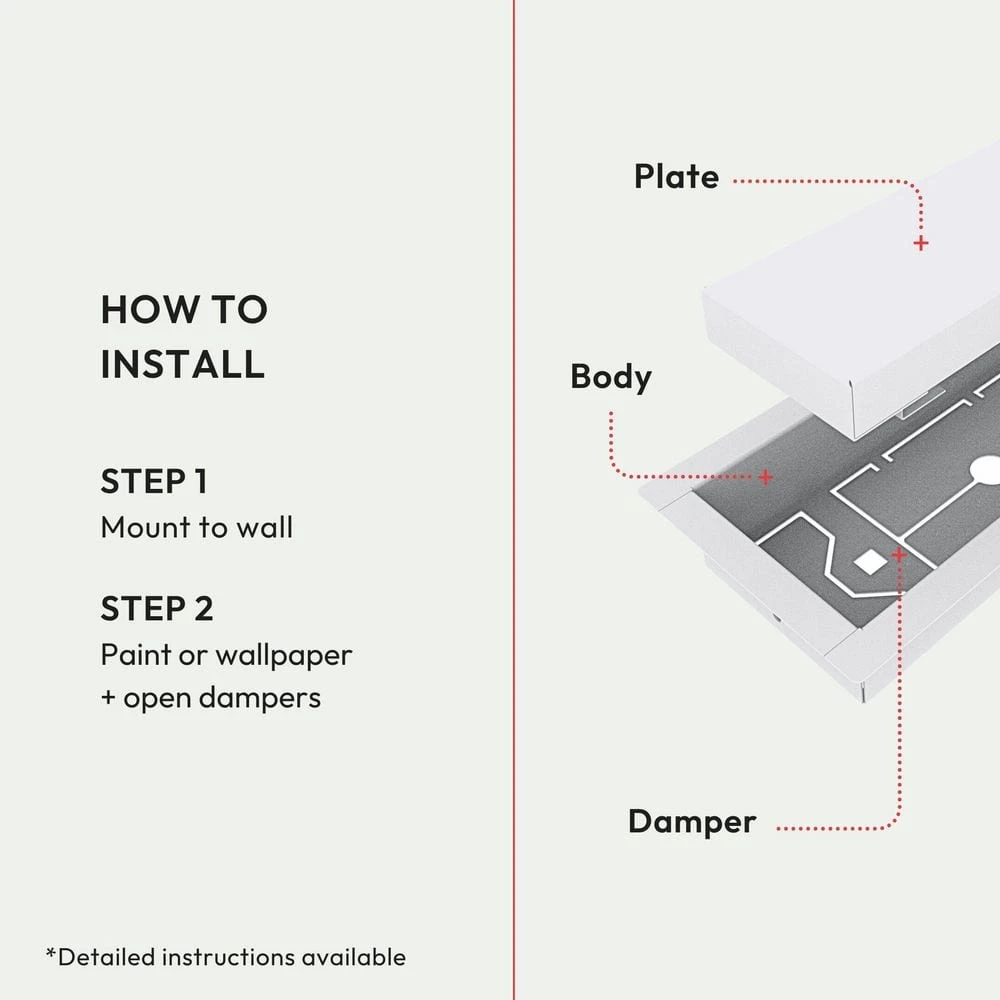 Elevate your unloved wall vents with a modern solution. We’ve re-imagined grille vents into a simple rectangular air channel design. Paint or wallpaper center plate to hide your vents in plain sight. Retrofit install at any time. This is our high-end Luxe model, made in solid steel. Super easy DIY install in under 5-minutes. A perfect weekend project to upgrade an eyesore into a design feature. Standardize all the vents throughout your home, regardless of surface material and location. Floor vent models also available.
