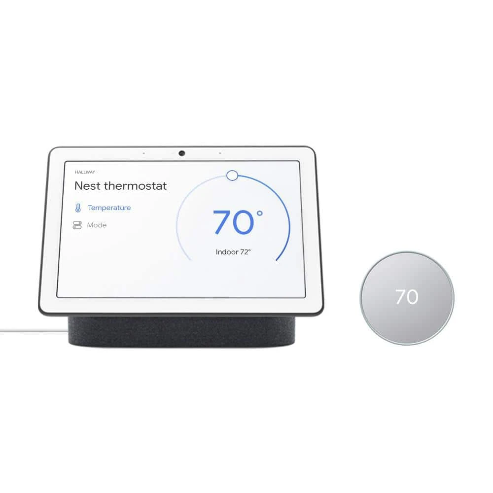 Make controlling your home’s temperature easy with this Google Nest Thermostat in Fog and Nest Hub Max in Charcoal kit. The thermostat can be controlled with the Google Home app, Google Assistant or the Nest Hub Max dashboard. Installation takes only 30 minutes.
