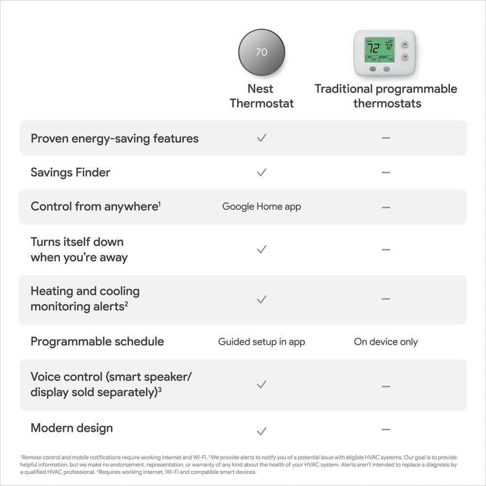 - Disclaimers: Voice control with Google Assistant requires a compatible smart device; Remote control and mobile notifications require working internet and Wi-Fi; We provide alerts to notify you of a potential issue with your HVAC system; Our goal is to provide helpful information, but we make no endorsement, representation, or warranty of any kind about the health of your HVAC system; Alerts aren’t intended to replace a diagnosis by a qualified HVAC professional; Energy savings are not guaranteed and depend on energy usage, weather and other factors; Remote control and mobile notifications require working internet and Wi-Fi
