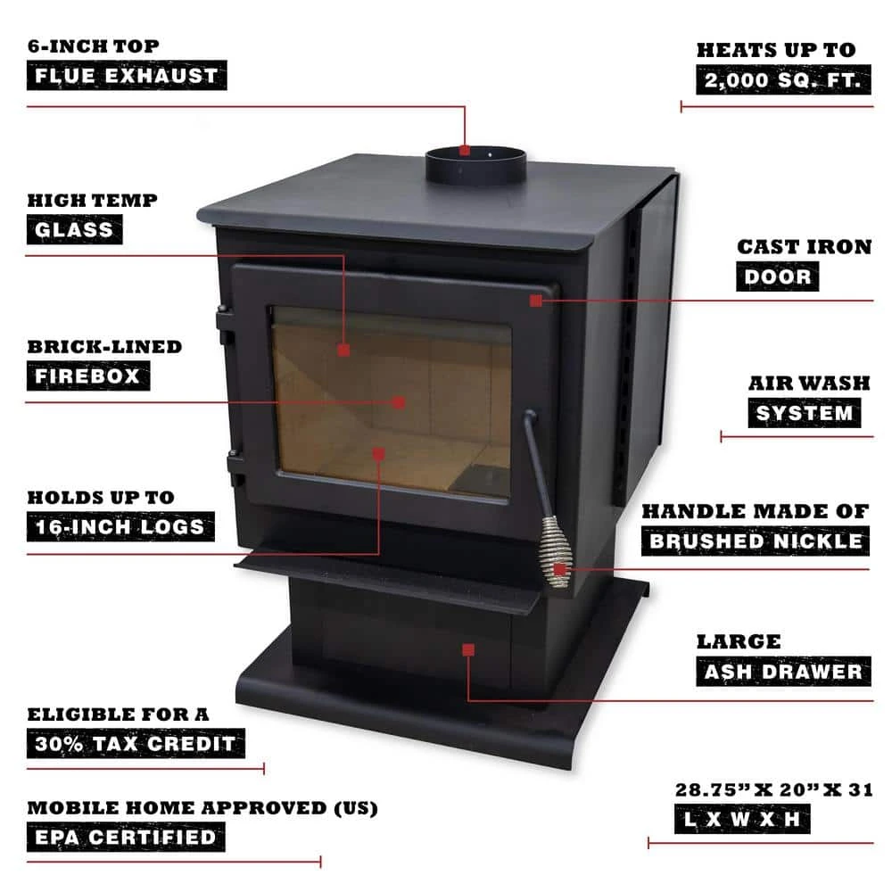 - Stove qualifies for a 30% IRS biomass stove tax credit