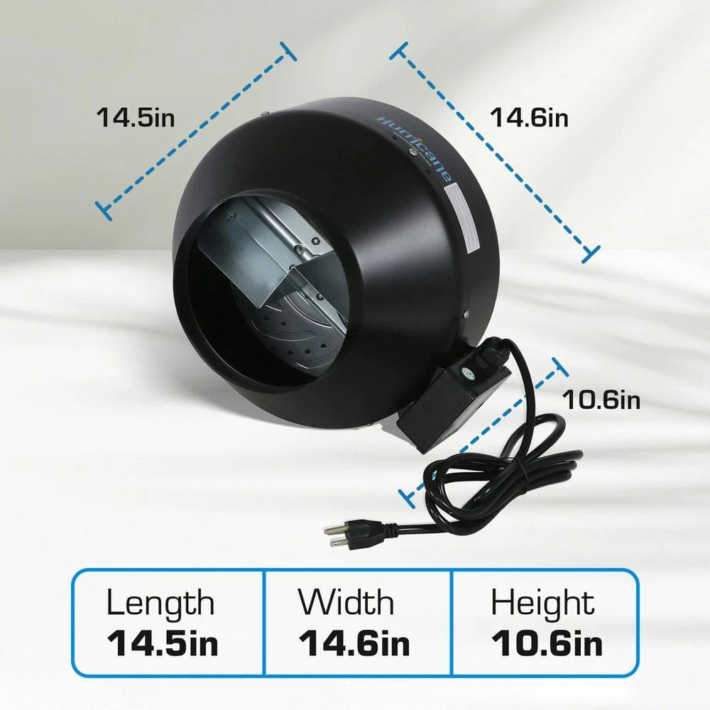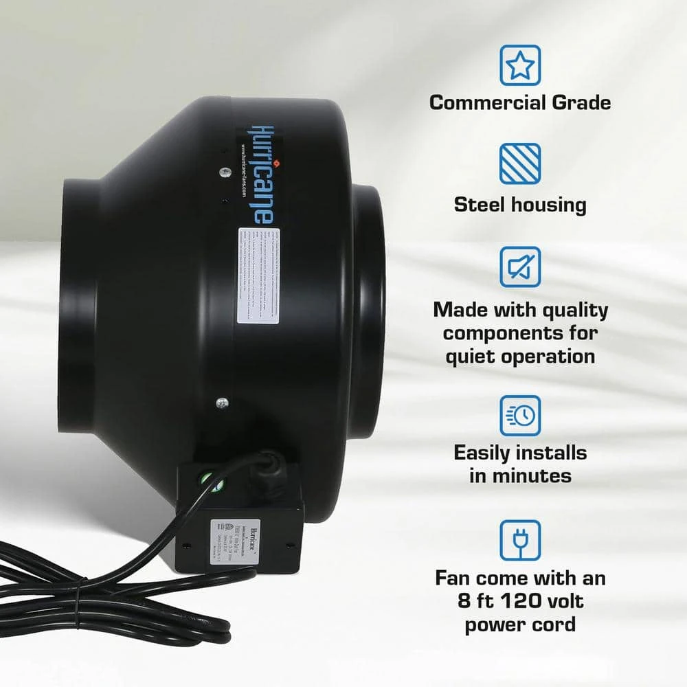 Unleash the cyclonic force of this 2-pack Hurricane Commercial Grade Inline Fan, a formidable 8 in. powerhouse boasting a staggering 745 CFM. These inline marvels redefine high performance with their quality prowess. Encased in steel housing adorned with a robust powder-coated finish, these fans are not just robust, it’s an industrial aesthetic statement. Precision-engineered for tranquility, these Inline fans whisper through quality components, ensuring a quiet symphony of air circulation. With steel might and a durable finish, these fans stand resilient against the test of time. Installation becomes a breeze with the included mounting brackets and user-friendly instructions, transforming the setup process into a mere matter of minutes. The 5 ft. 120-Volt power cord ensures accessibility and flexibility in positioning. These fans aren’t just standalone performers, these harmonize seamlessly with other premium products. Pair them effortlessly with Fresh and Black Ops Carbon Filters, Ideal-Air Ducting and Clamps, and Titan Controls ventilation controllers for a ventilation ensemble that’s unparalleled in efficiency. Dive into a realm of high-performance operation where these 2-pack Hurricane Inline Fans redefine the airflow landscape. Let them be the pulse of your ventilation system, circulating excellence with every revolution.