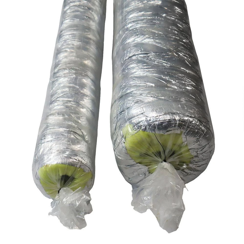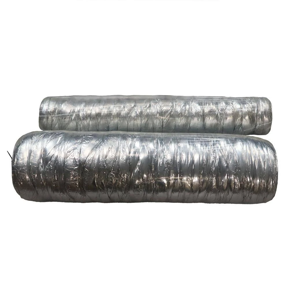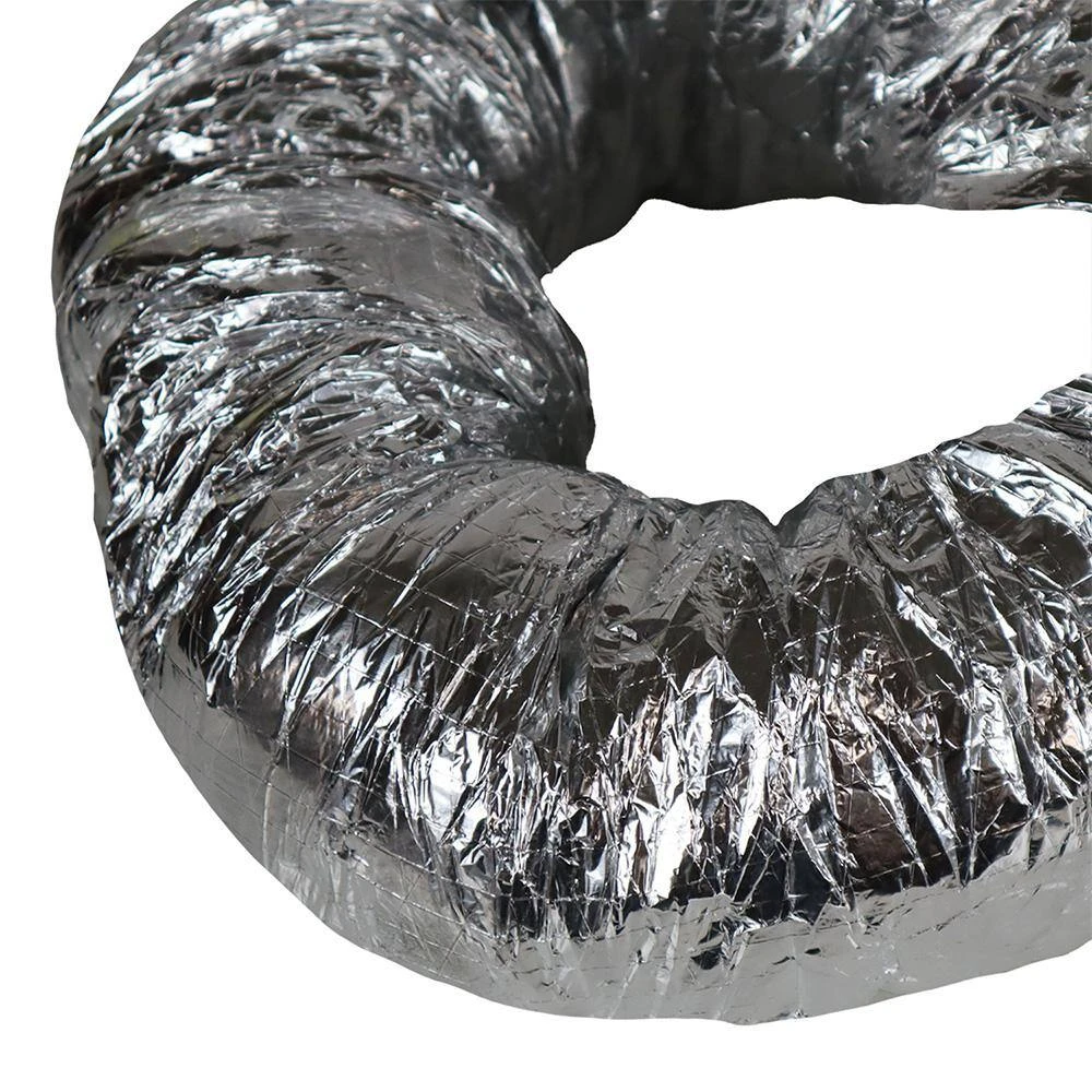 The HVAC Insulated-Flex R-6 is an insulated hose specifically made for the movement of conditioned air and made to reduce the amount of heat loss as the air travels across the hose length. This Insulated flexible duct is constructed with plies of aluminum foil and insulated with fiberglass duct wrap. There are 3 layers across the wall thickness: the jacket is made from a silver fiberglass reinforced fabric, the insulation is a fiberglass wrap and the liner is a spiral aluminum foil duct. The hose is ideal for moving air-conditioned air and for use with permanent air conditioning units. This air conditioning duct is highly compressible, and it has a 5 to 1 compression ratio which allows a 25 ft. length to compress to a 5 ft. length. The hose is sold in 25 ft. coils and is sold in popular duct diameters of 4, 6, 8 and 12 in. inside diameter. The flex duct ends are plain-cut and can easily fit over a pipe or a connector of the same outside diameter. This flexible insulated duct has working temperature range of up to 160° Fahrenheit on the high side and -20° Fahrenheit on the low side. The R-Value of an insulated ductwork measures how well the insulation can resist heat loss as the air travels within the duct. R-4 to R-8 are the ideal R-Value range for insulated ducts used in air ventilation. The HVAC Insulated-Flex R-6 is an insulated duct that delivers the best of both worlds, which is a hefty insulation wrap while keeping material costs within budget.