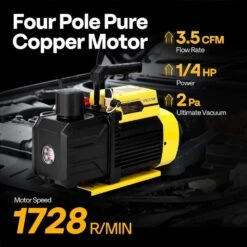 110-Volt 1/4 HP 3.5 CFM Single Stage Rotary Vane Air Vacuum Pump Kit With AC Manifold Gauge