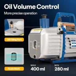 110-Volt 1/4 HP 3.5 CFM Single Stage Rotary Vane Air Vacuum Pump With Oil Bottle In Red