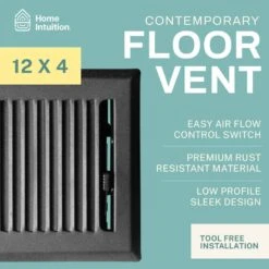 Contemporary 2 X 12 In. Decorative Floor Register Vent With Mesh Cover Trap, Dark Grey