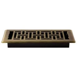 4 In. X 10 In. Steel Antique Brass Oriental Design Floor Register