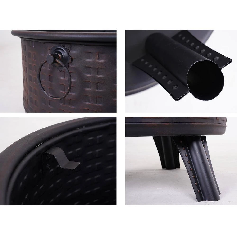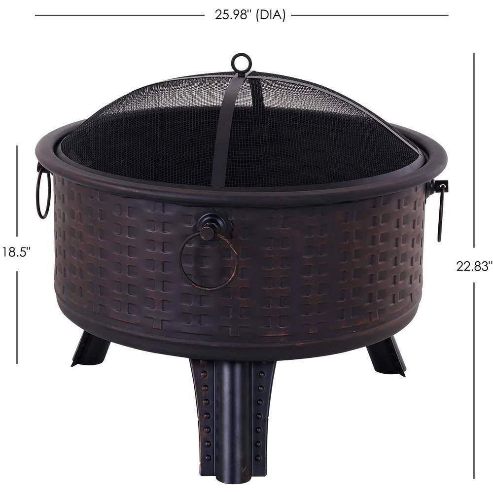 This outdoor, wood-burning fire pit adopts high-quality outdoor weather-resistant powder spraying to effectively prevent rust, design provides ample room for the perfect size fire and is easy to tend and clean. The overall fire pit diameter is 25.9 in. D bowl and 18 in. D is accented with a decorative cross-weave pattern. Includes a free cover and fire pit tool. This is a wood-burning fire pit and with all fire pits, is not designed to burn on a deck unless a fireproof pad is used. Enjoy this sturdy steel fire pit with the decorative design in any backyard or patio today.