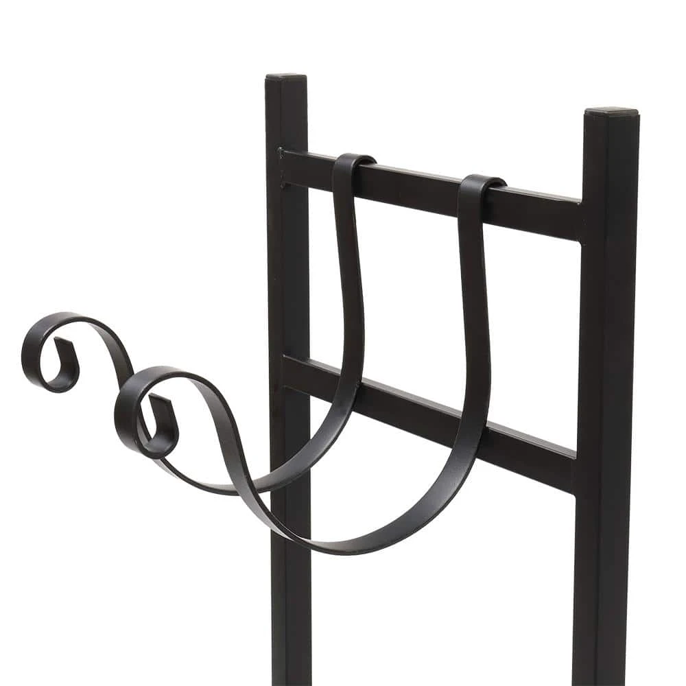 - Integrated hooks on the stand create places to hang the included tongs, poker, broom, and shovel, to maintain the fire safely and easily
