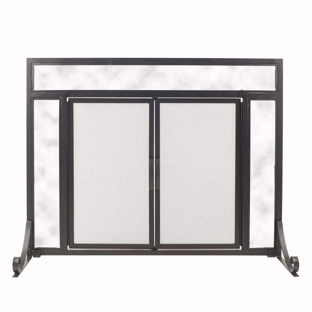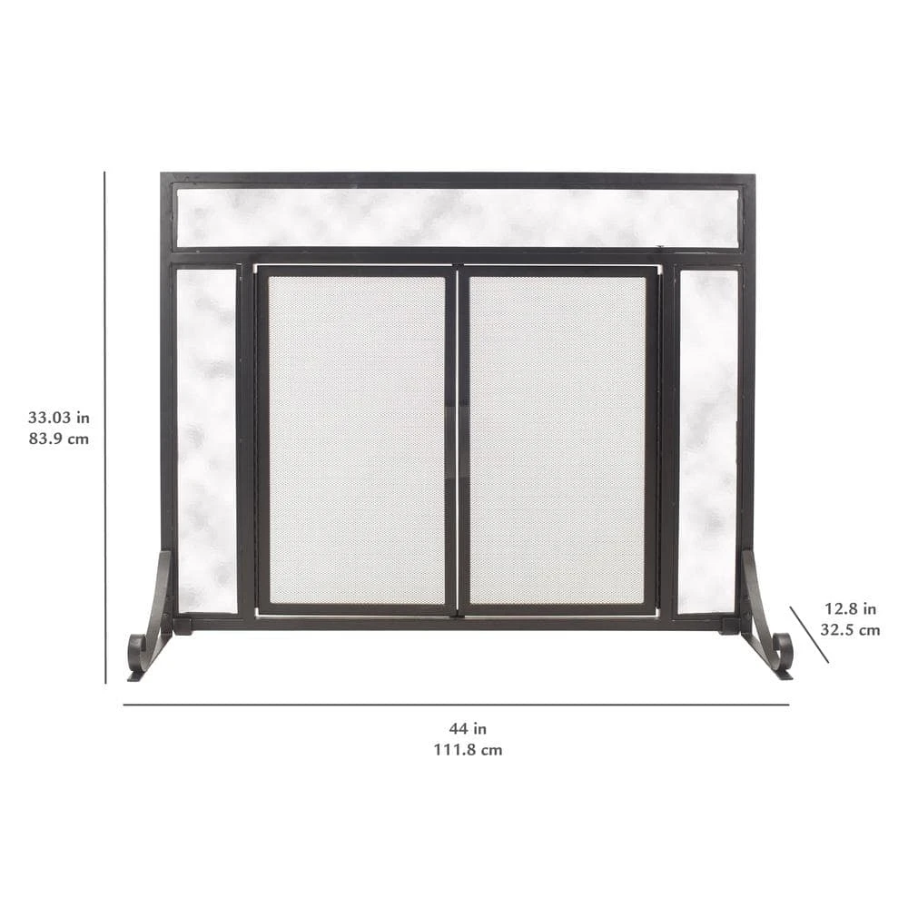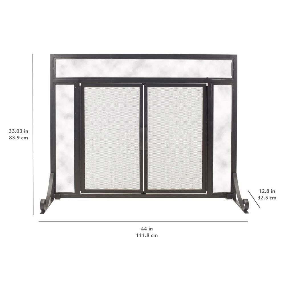 The Manchester Fireplace Screen is just what your hearth needs for an updated, elegant look. It features tempered, textured glass accent panels that provide a unique view of the fire. When open, two doors allow easy access to the fireplace. When closed, they help protect your home from escaping sparks. Use the adjustable back feet to place the screen flush against the fireplace. Front legs are high quality and provide a touch of sophistication with their scroll detail. This 44