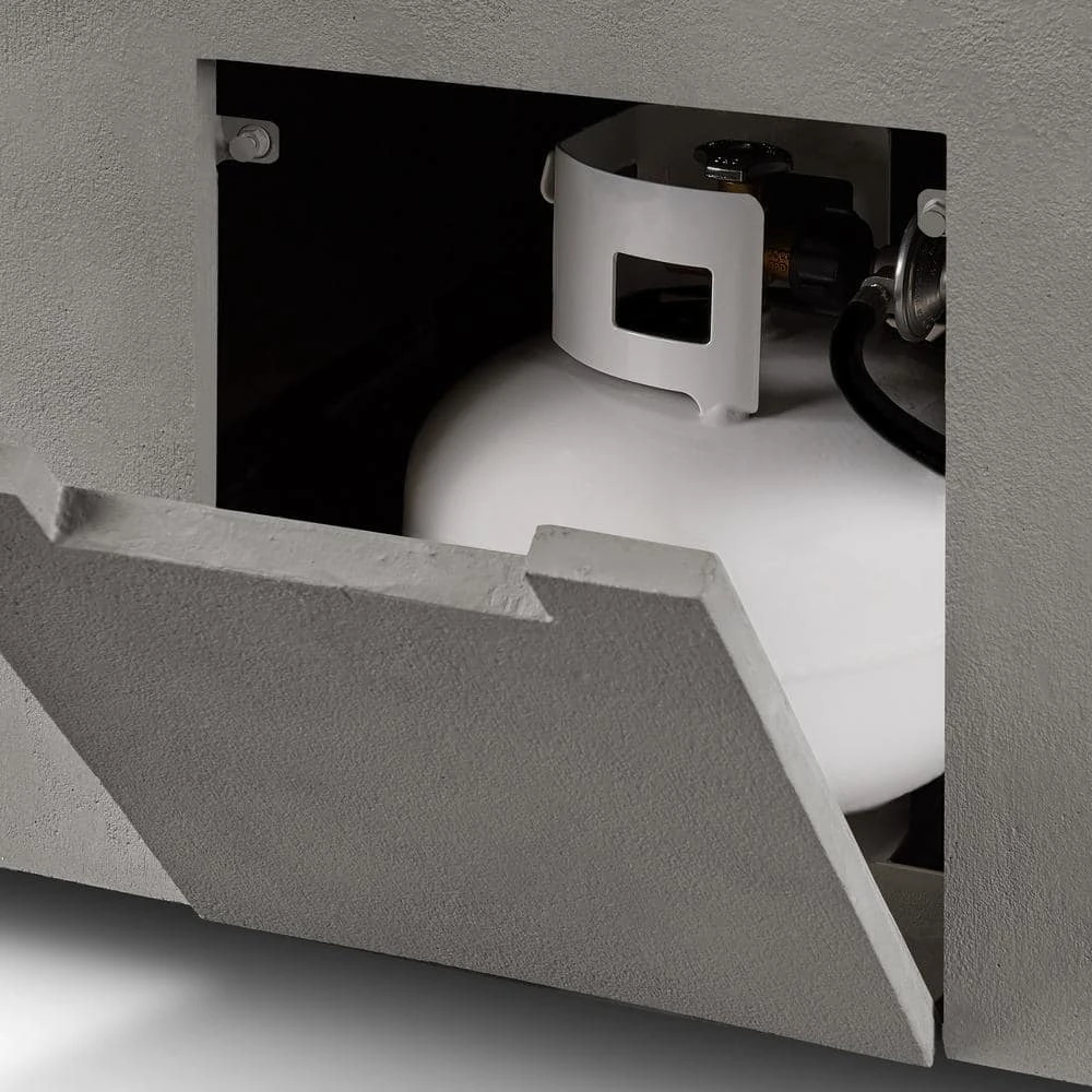 Create the ideal outdoor gathering space with the stylish and versatile character of the Matteau Propane Fire Table. This fire table has a simplified silhouette and a weathered, rustic finish with our reliable brass burner system. Uniquely designed with a convenient access door to conceal an 11 pound propane tank. Available in natural gas or propane.