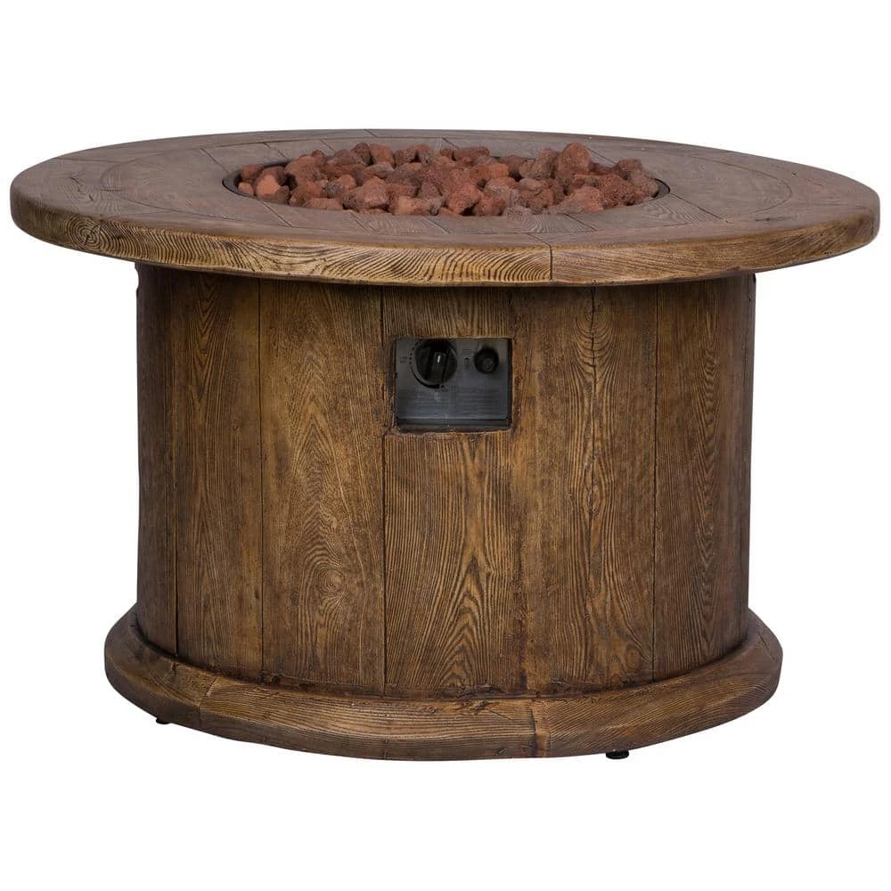 Create an inviting outdoor space for friends and family with the Merida 40 in. Round Outdoor Propane Gas Fire Pit Table from Shine Company. Admire the reflection of the dancing flames of this fire pit while keeping yourself warm and cozy within the heating radius of this impressive outdoor centerpiece. Constructed from glass fiber reinforced concrete (GFRC) – this natural material is highly durable, environmentally-safe, weather and fire resistant and requires very low maintenance. This fire pit features a stainless steel burner with a maximum 50,000 BTU output. Lava rocks provide heat retention and a pleasing aesthetic. Includes a protective custom-fit vinyl cover to keep the pit clean when not in use. A standard 20-lbs Propane tank is required. Bring uniqueness and elegance with Shine Company’s line of fire pits.