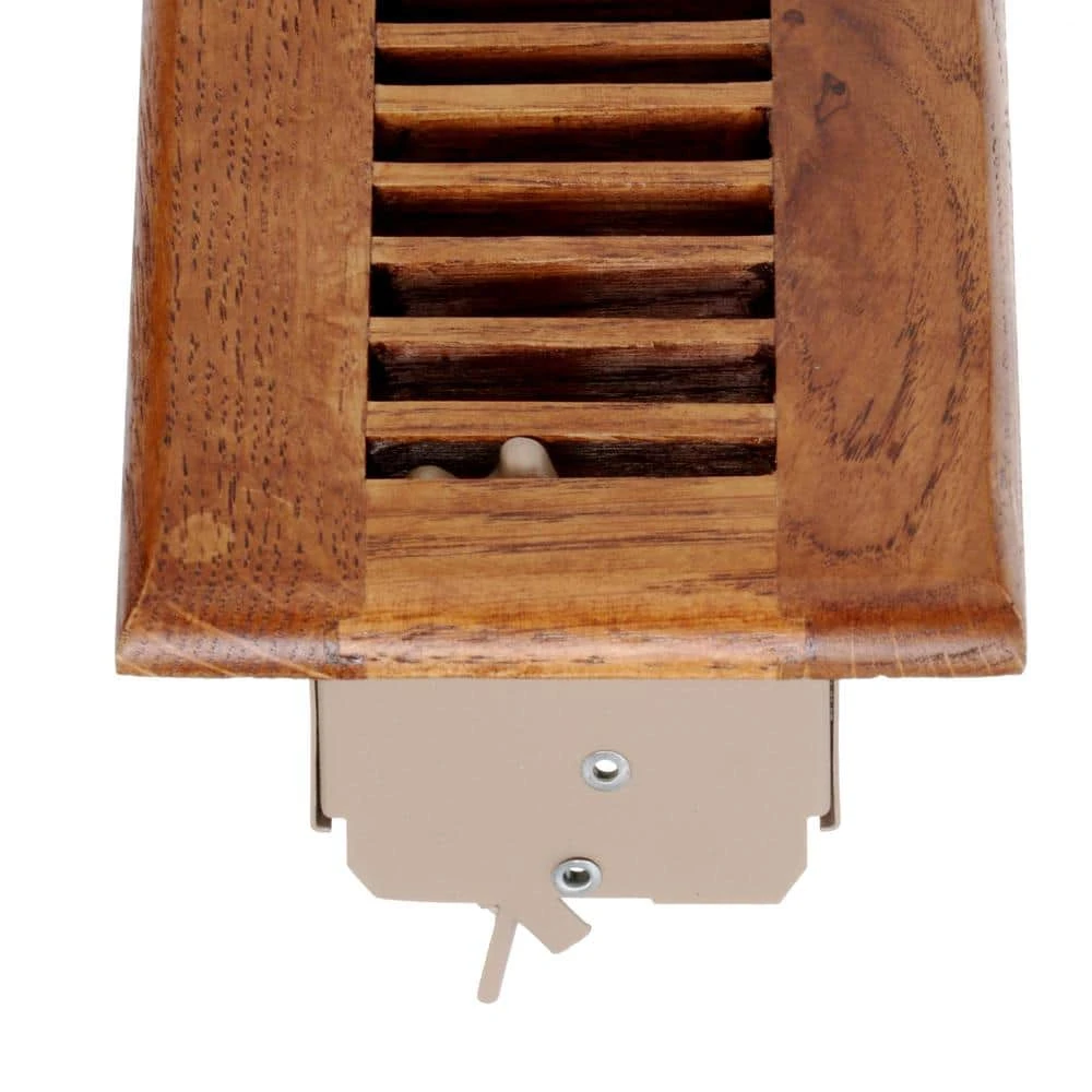 The E1448M 02X12 is a 2 in. x 12 in. 2-way air register used for floor openings. The face is made from oak and comes Medium Finished. Our Smooth glide technology ensures rattle free and quiet airflow from your central air system. Smooth glide also provides for smooth opening and closing of your back dampers.