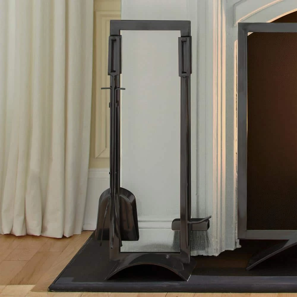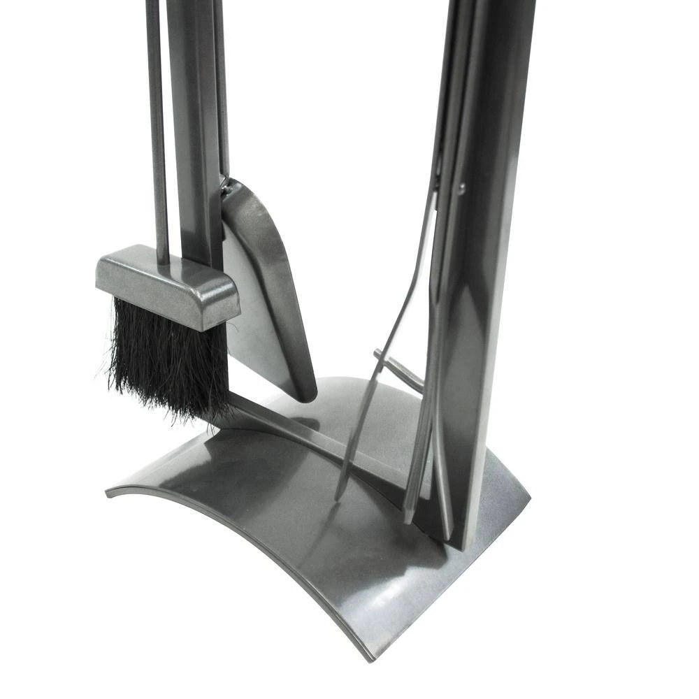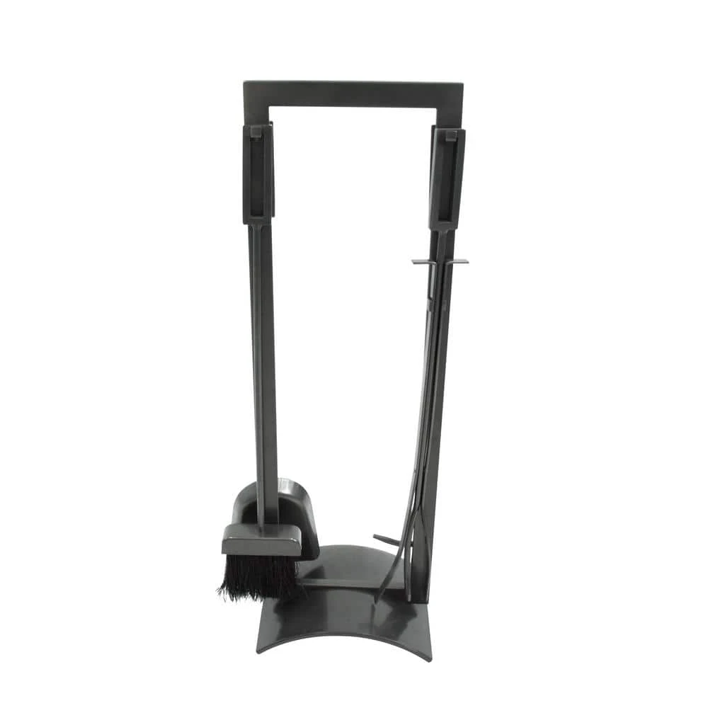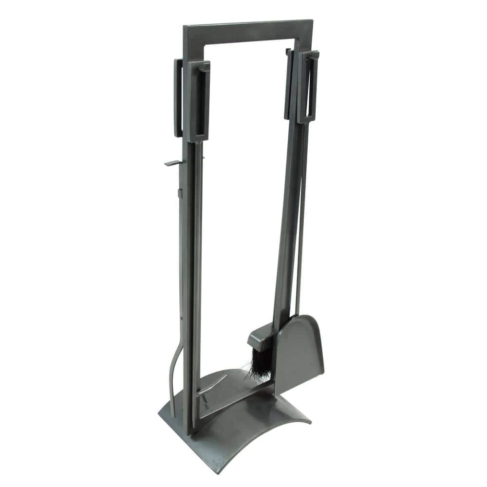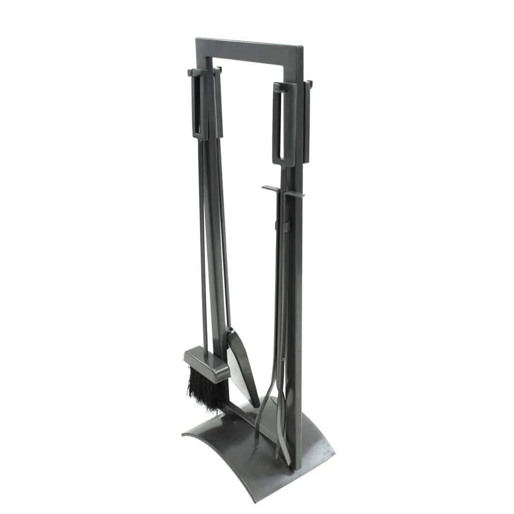 Highly functional, yet beautifully designed, the Orion modern style toolset provides an elegant accent to your fireplace. It features clean lines and a sturdy base to hold the fireplace tools and keep them handy when you need them. Constructed from high-quality steel, this toolset includes a shovel, poker, tongs, and an all-natural tampico brush for all your fire tending needs. This toolset has a gun metal finish that adds both beauty and durability. Minimal assembly is needed.