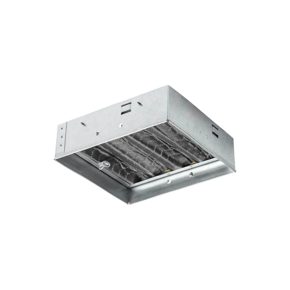 The BROAN RDFU Radiation Damper prevents the rapid spread of fire to other areas of a home during a fire. Many codes require that exhaust fans installed in multi-family homes, with fire-rated ceilings, must be protected by radiation dampers. When the air temperature passing through the damper exceeds 165F the fusible link melts, triggering the thermal fabric to automatically close across the damper. Airflow is interrupted by a flame and heat barrier, preventing the rapid spread of fire to other areas of the home.
