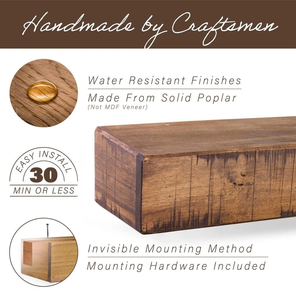 - Hand built mantels – our crafted mantels are made with top end quality poplar wood, every wood mantel shelf is hand crafted to fit a rustic or modern farmhouse style with the character of a reclaimed wood shelf