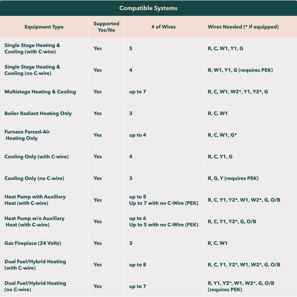 - Works with most 24 VAC HVAC equipment: Gas, oil, electric, dual fuel, forced air Conventional (2H/2C) Heat Pump (3H/2C), & Boilers. Includes a ecobee Power Extender Kit for homes without a C or Common Wire, to ensure an easy installation
