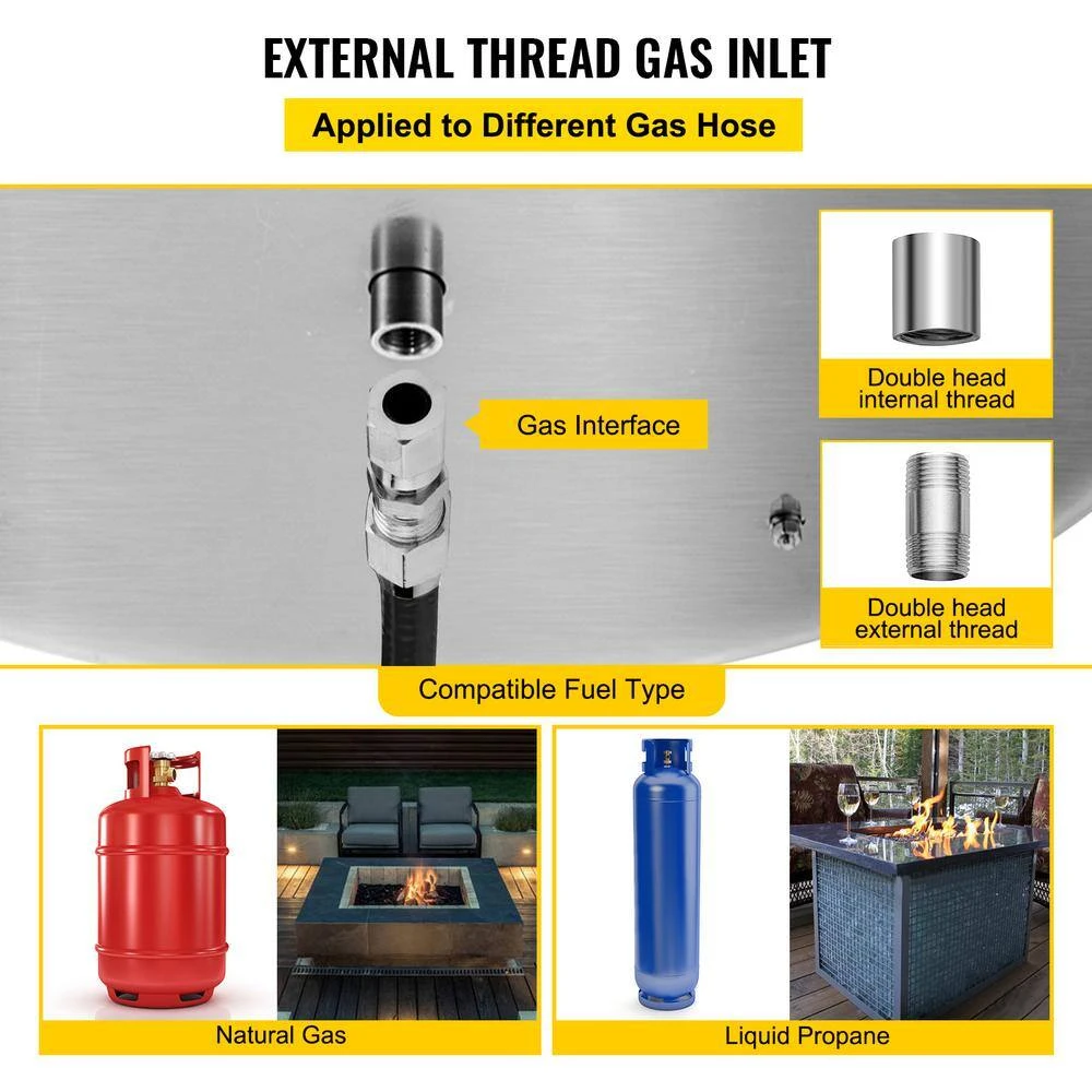 - Package Content:1 x Fire Pit Pan,1 x Volcanic Rock,1 x PTFE Raw Material Belt,1 x 1/2 in. Double Head Internal Thread,1 x 1/2 in. Double Head External Thread