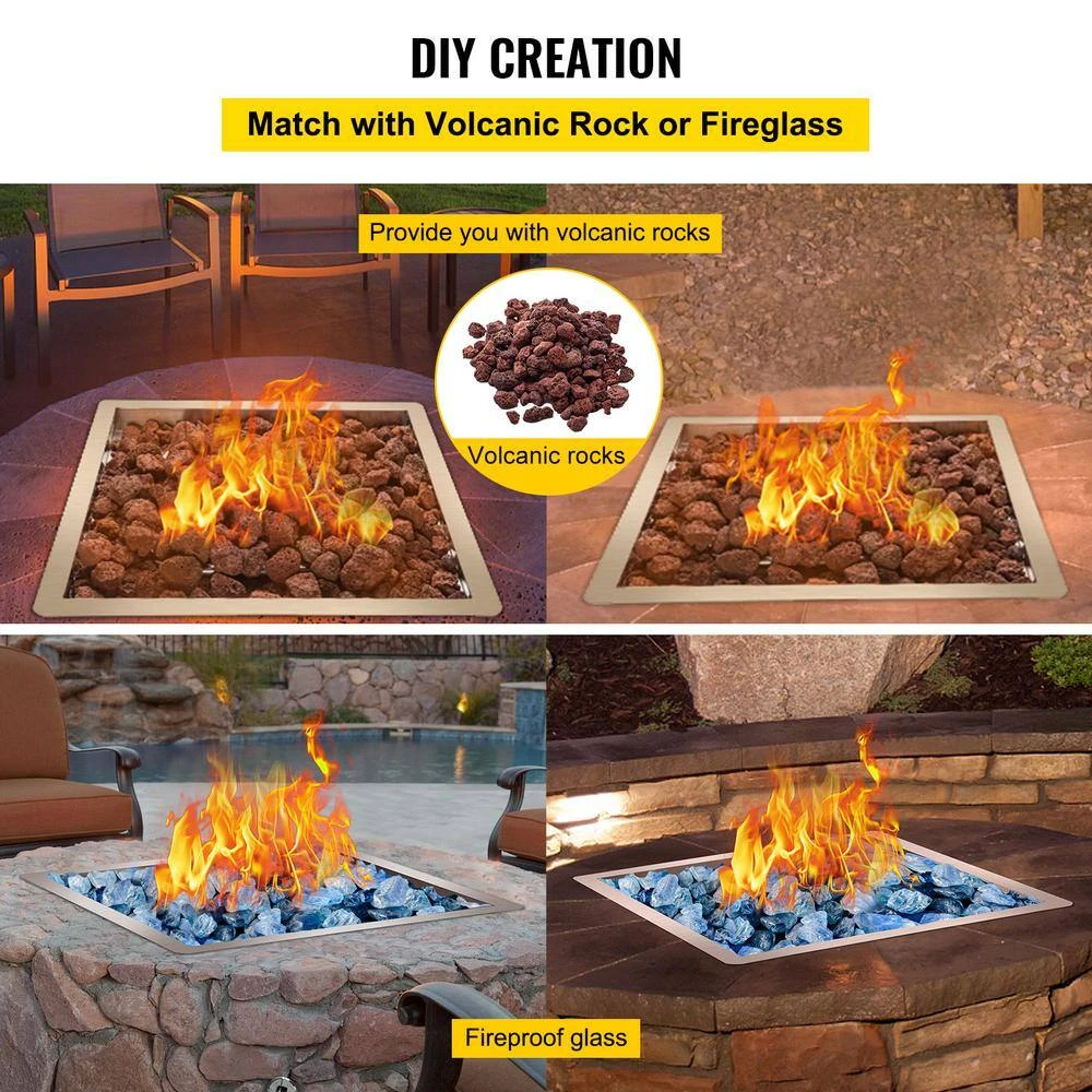 - DIY Your Own Style: This fire pit pan can be filled and decorated with our complimentary volcanic stone or you can prepare colored fireproof glass for decoration. Ideal for DIY in the living room, backyard, swimming pool and lounge and create a holiday feeling with a hot pot