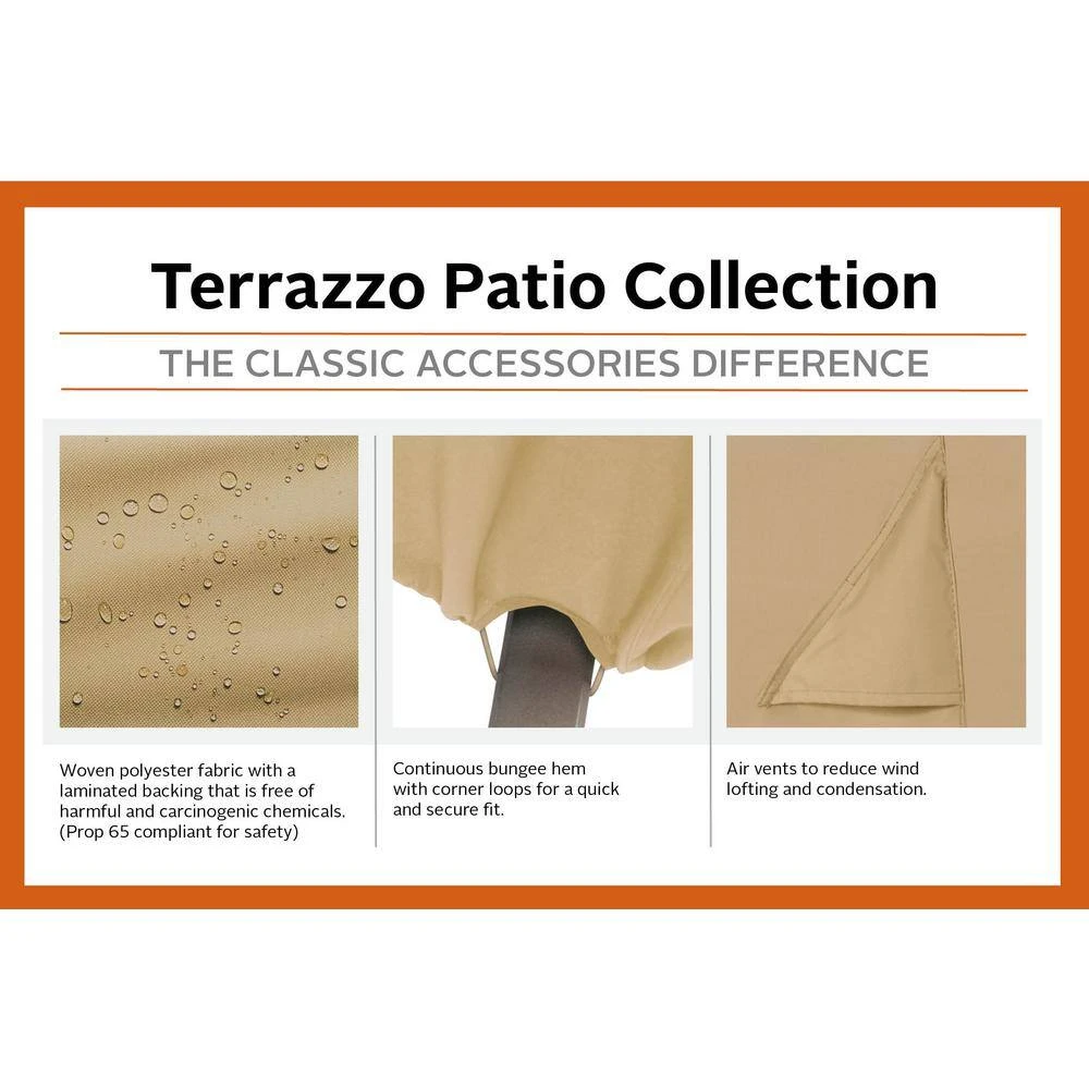Terrazzo fire pit table covers by Classic Accessories offer high-end style in medium weight protection designed to keep your patio furniture looking its best year round. When you buy a Classic Accessories fire pit cover you are not just getting a cover; you’re also purchasing peace of mind. All Terrazzo covers are backed by a 1 year warranty.