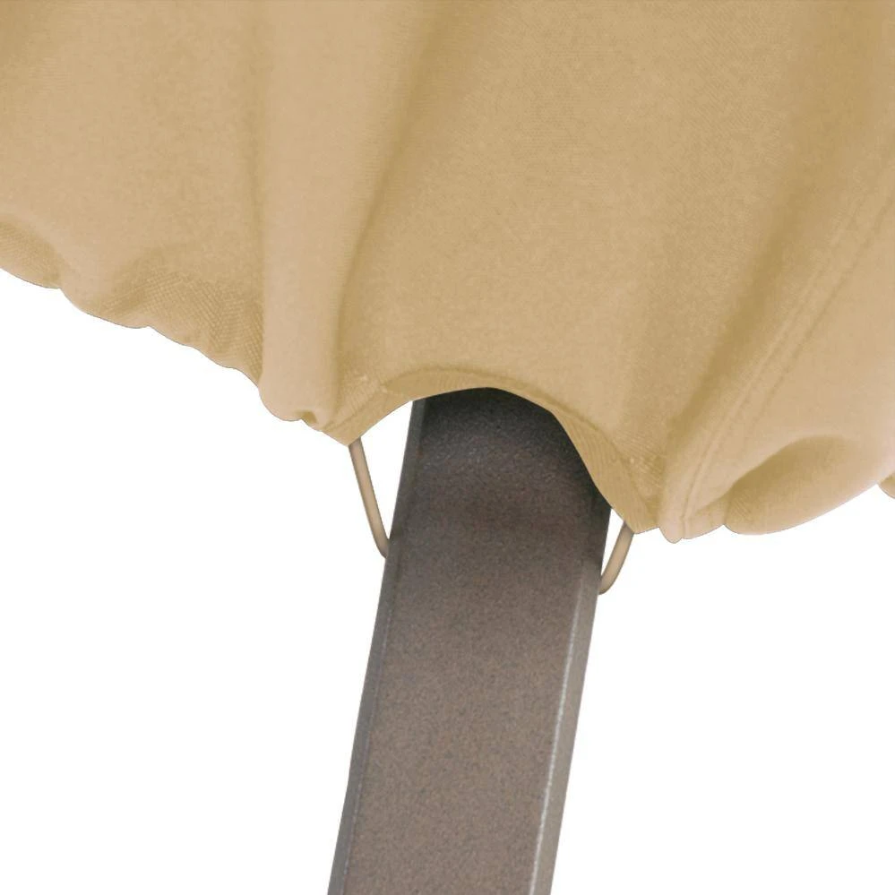 - Durable patio cover with advanced features: air vents reduce inside condensation and wind lofting while an elastic cord in the bottom hem provides a fast and custom-like fit