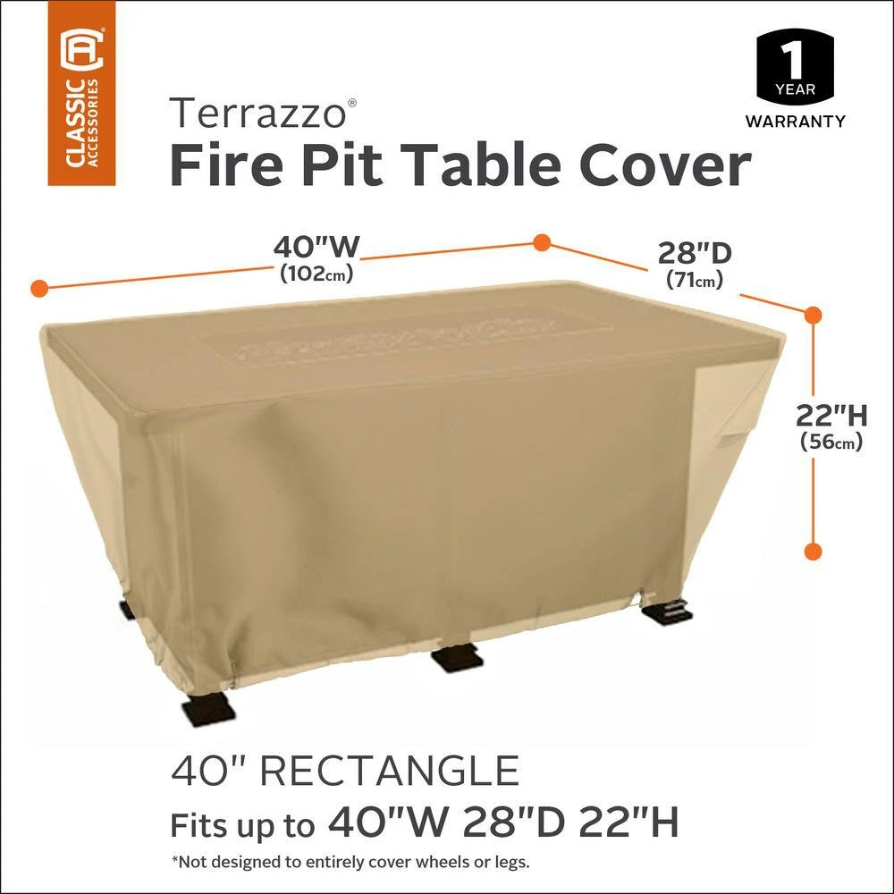 - Outdoor patio cover: guaranteed to fit rectangular fire pit tables 40 in. W x 28 in. D x 22 in. H