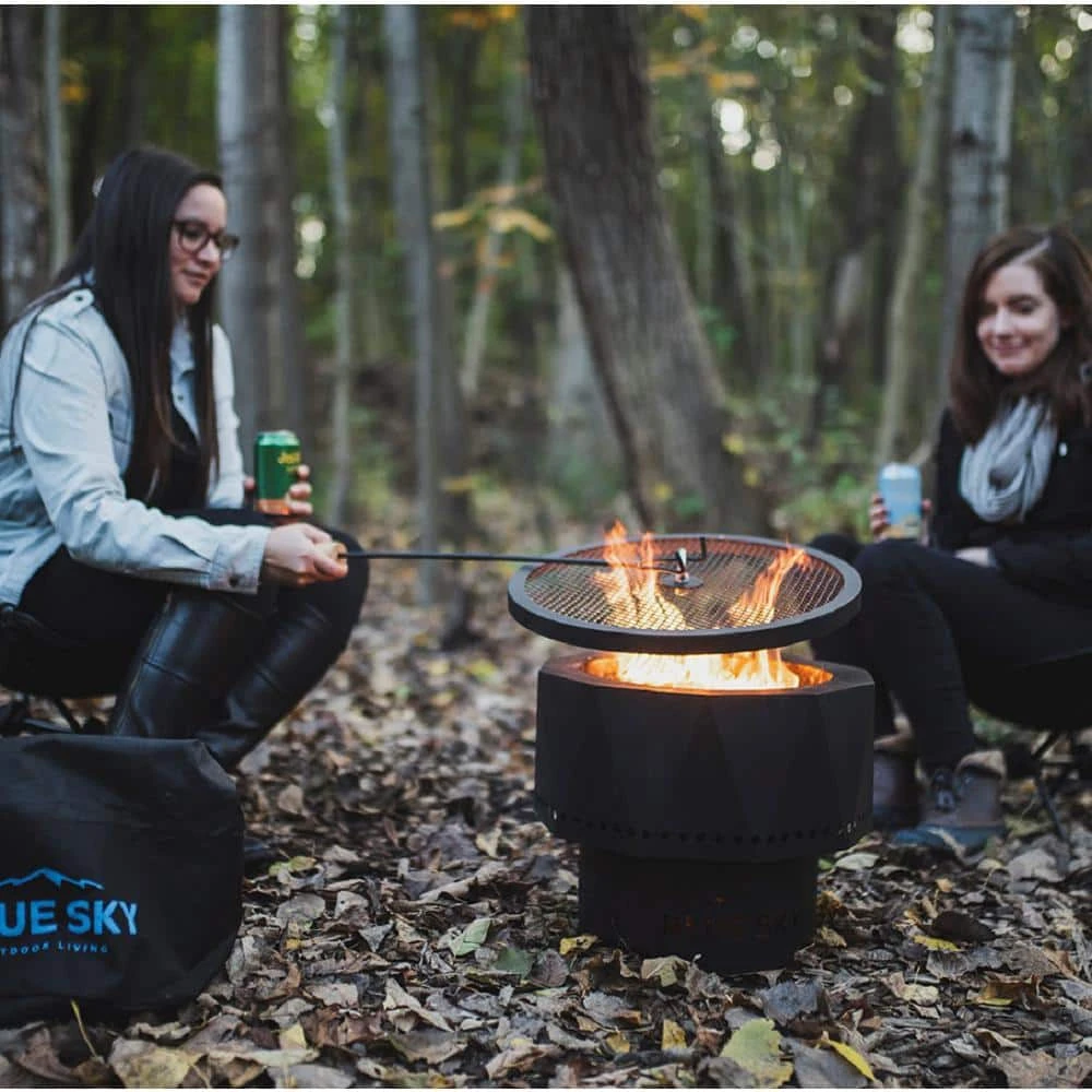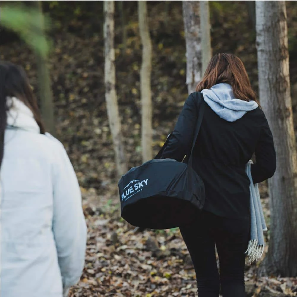 - Fire pit nests together to fit into a small carrying bag (included)