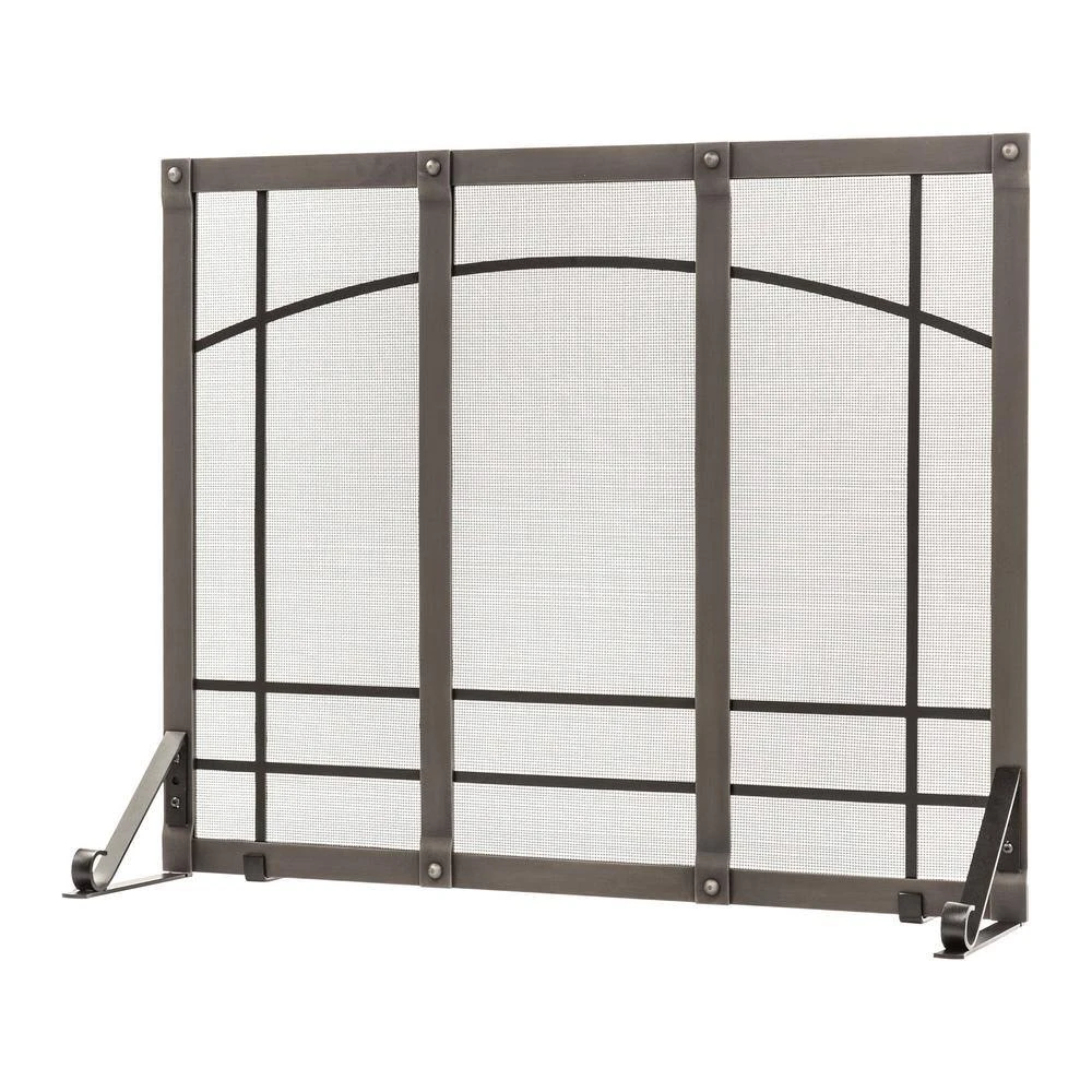 The Titan fireplace screen adds a strong industrial touch to your hearth even as it fit in with the most traditional decor. The flat panel design is constructed from heavy-duty steel and helps shield your home from fly away sparks. This screen is powder coated with a forged iron finish that adds both beauty and durability. The Titan features adjustable back legs allow you to place the screen flush against the fireplace with very little assembly required.