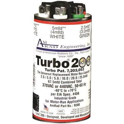 Replaces over 200 single and dual capacitors up to 67.5 MFD, 370 or 440-Volt. Filled with a thick non-PCB dielectric fluid to reduce heat. Rust free all brass terminals. Comes with a 5 Year Warranty.