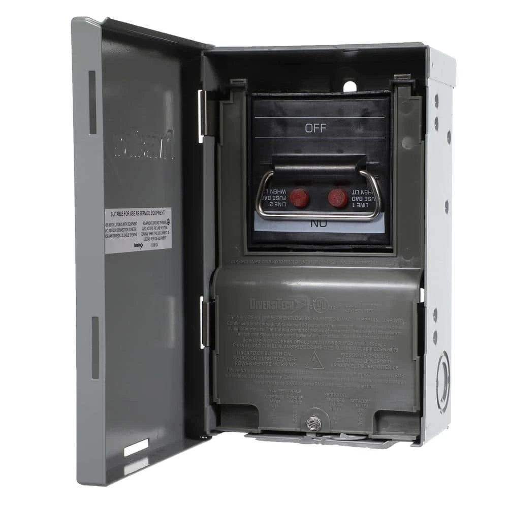 Pull-out disconnect switches with fuses in a metal case with 180° opening door. The disconnect is designed to stop the flow of electricity to allow you to safely work on the air conditioner. The disconnect is housed in a steel enclosure that is resistant to rust and corrosion.