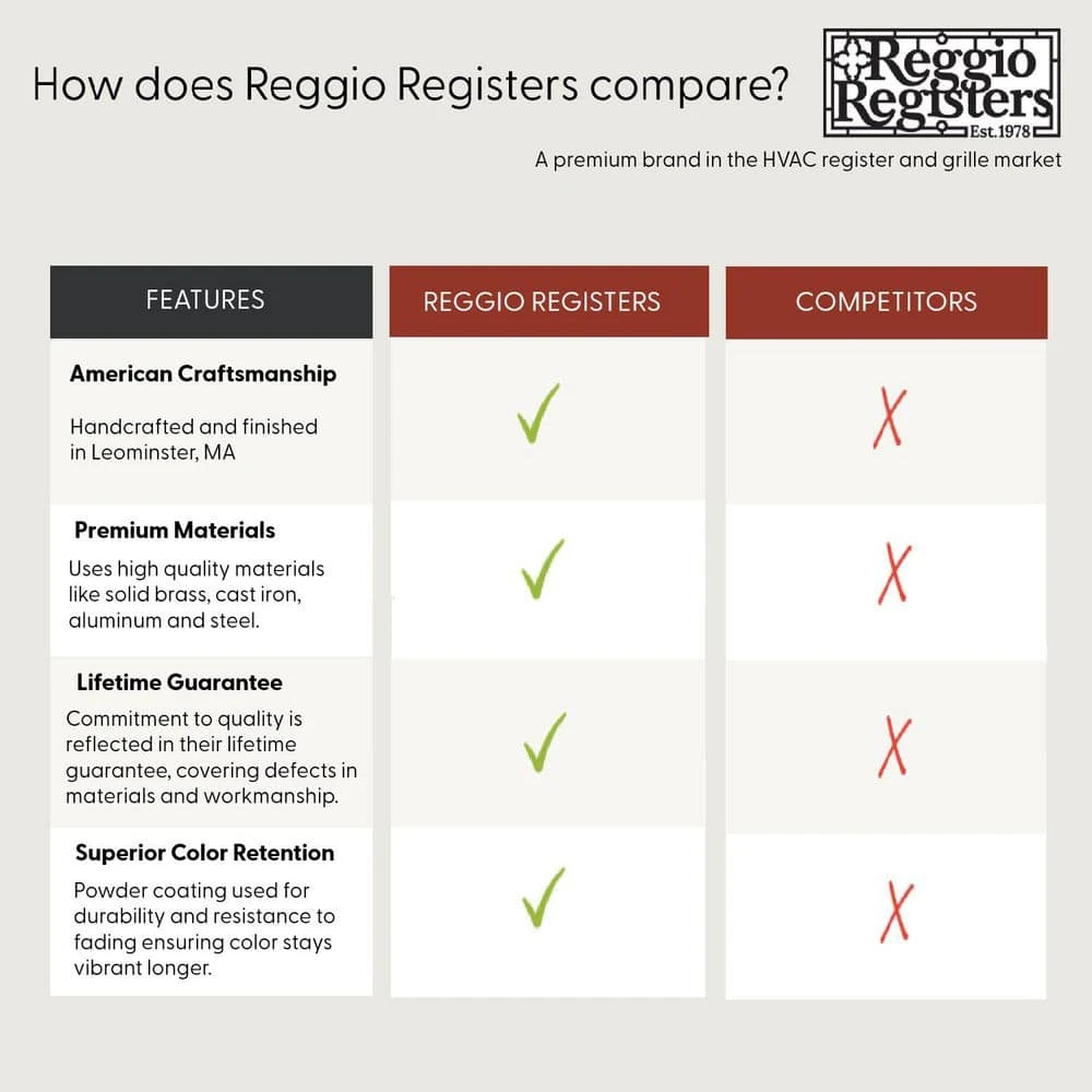 - Made in USA: handcrafted outside Boston, Massachusetts, with an underside lip to hold a floor register in place