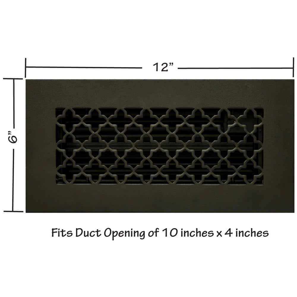 - Built to last from powder coated rugged solid steel that is twice as thick as competing products. Direct replacement vent that fits 10 inch wide X 4 inch floor, with overall finished size of 12 inches X 6 inches.
