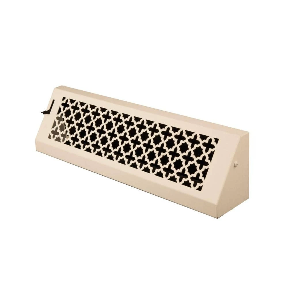 - Built to last from powder coated rugged solid steel that is almost twice as thick as competing products. Direct replacement baseboard vent that is 18 inches wide, 4.75 inches tall, and 3.5 inches in depth.