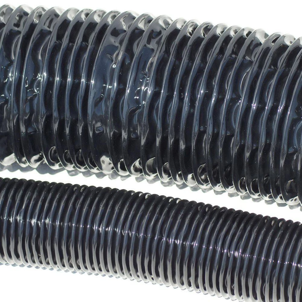- Black polyurethane wall hose construction reinforced with a spring steel wire helix